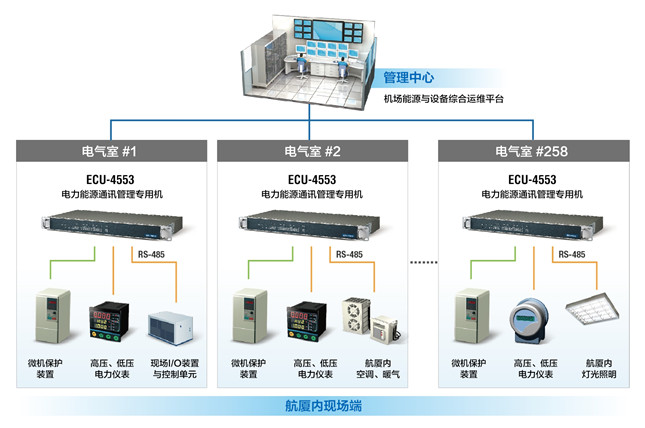 系統(tǒng)需求以滿足一億人次年旅客吞吐量為目標(biāo)的北京新機(jī)場即將于2019年下半年竣工營運(yùn)。該機(jī)場既被定位為大型國際航空樞紐,更致力于成為中國綠色機(jī)場的典范。因此設(shè)計(jì)之初就把節(jié)能環(huán)保理念納入規(guī)劃,并已委由系統(tǒng)整合商為整個(gè)機(jī)場的26個(gè)變電室、60臺變壓器、9個(gè)備用電源發(fā)電機(jī)房及258個(gè)配電室建置一套無人值守、集中管理的能源與設(shè)備綜合運(yùn)維平臺,藉此全面監(jiān)控航廈內(nèi)的空調(diào)、照明、供水、供暖、電梯等能耗設(shè)施及相關(guān)儀表。而為了能將機(jī)場內(nèi)的能耗做通盤審計(jì)以分析出可節(jié)省能源的潛在環(huán)節(jié),再通過聯(lián)動機(jī)制降低能耗,系統(tǒng)整合廠商需要在每間電氣室內(nèi)配置計(jì)算機(jī)作為數(shù)據(jù)網(wǎng)關(guān)收集大量數(shù)據(jù),并且將不同通訊協(xié)議數(shù)據(jù)轉(zhuǎn)換為符合IEC 61850-9的格式后,才可上傳至能源與設(shè)備綜合運(yùn)維平臺。而該系統(tǒng)整合廠商想要采購的計(jì)算機(jī)必須滿足以下條件: ·高性能、高穩(wěn)定性的工業(yè)級計(jì)算機(jī)以提供足夠的運(yùn)算能力處理大量資料; ·符合IEC 61850-3標(biāo)準(zhǔn)的訊號隔離與抗干擾硬件設(shè)計(jì); ·采用RT-Linux實(shí)時(shí)操作系統(tǒng)以達(dá)到實(shí)時(shí)控制; ·較寬的工作溫度范圍與較佳的抗干擾能力以便在嚴(yán)苛環(huán)境中穩(wěn)定運(yùn)作; ·具備多個(gè)RS-485/232串行端口與網(wǎng)絡(luò)端口以連接眾多底層設(shè)備與傳送數(shù)據(jù)。 北京新機(jī)場能耗(圖片源自網(wǎng)絡(luò)) 系統(tǒng)概述同時(shí),系統(tǒng)也可經(jīng)由ECU-4553對底層設(shè)備下達(dá)控制指令,譬如根據(jù)航班信息來事前了解某些區(qū)域旅客流量的多寡,于人流較少時(shí)關(guān)閉該區(qū)的空調(diào);又或者是當(dāng)接收到變壓器的異常訊號而出現(xiàn)臨時(shí)停電狀況時(shí),亦能由監(jiān)控中心遠(yuǎn)程啟動備用電源發(fā)電機(jī)。 內(nèi)建TI Cortex A8處理器的ECU-4553是一款符合IEC 61850電力規(guī)范的高性能工業(yè)等級通訊管理專用機(jī),搭配具有實(shí)時(shí)特色的RT-Linux操作系統(tǒng),可讓智能化能耗監(jiān)控系統(tǒng)的整體執(zhí)行效率更精準(zhǔn)。支持寬溫(-40~70°C)則可排除因極度低溫或高溫導(dǎo)致計(jì)算機(jī)無法啟動或死機(jī)的問題。而在電磁兼容性(EMC)方面,ECU-4553符合IEC 61850-3硬件標(biāo)準(zhǔn)規(guī)范,既具備足夠抵抗外界電磁干擾的能力,同時(shí)也不會對其它設(shè)備或裝置的運(yùn)作造成影響,因此就算被安裝在有眾多電氣與電子設(shè)備的環(huán)境內(nèi),它依然能夠穩(wěn)定運(yùn)行。 至于承上啟下的部分,ECU-4553提供4個(gè)網(wǎng)口、16個(gè)RS-232/485串口,可輕松連接使用不同協(xié)議(例如IEC-60870-5-104、IEC-60870-5-101、Modbus/RTU、Modbus/TCP)的各種設(shè)備,既滿足項(xiàng)目目前的聯(lián)網(wǎng)需求,又為系統(tǒng)預(yù)留了日后擴(kuò)充的空間。 專案導(dǎo)入系統(tǒng)架構(gòu)圖![]() 結(jié)論以上案例來自研華官網(wǎng) |