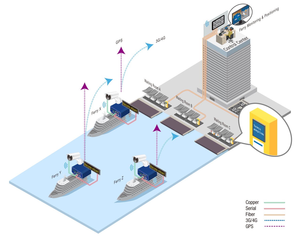 該過程概述如下: 1.將研華的蜂窩路由器放置在每艘渡輪上,并與PoE攝像機和顯示系統(tǒng)硬連接 2.蜂窩路由器收集數(shù)據(jù),以通過3G / 4G運營商空中傳輸?shù)娇刂浦行暮兔總€碼頭的自助服務(wù)終端。 3.蜂窩路由器還具有GPS功能,可實現(xiàn)實時定位。 4.控制中心負(fù)責(zé)監(jiān)視多個渡輪,從每個渡輪上的蜂窩路由器接收機載和位置信息,將原始數(shù)據(jù)轉(zhuǎn)換為有意義的乘客信息,然后通過光纖連接將其發(fā)送到每個碼頭。 5.每個碼頭都安裝了旅客信息亭,以通過儀表板顯示實時渡輪位置和登機信息。 ▌▌產(chǎn)品信息