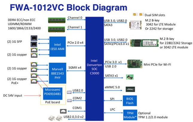 考慮到上述因素,客戶選擇了研華網(wǎng)絡(luò)應(yīng)用平臺(tái)FWA-1012vc作為其軟件方案的硬件架構(gòu),并通過(guò)LTE和wifi模塊支持蜂窩和WiFi網(wǎng)絡(luò),和有線網(wǎng)絡(luò)實(shí)現(xiàn)鏈路備份。